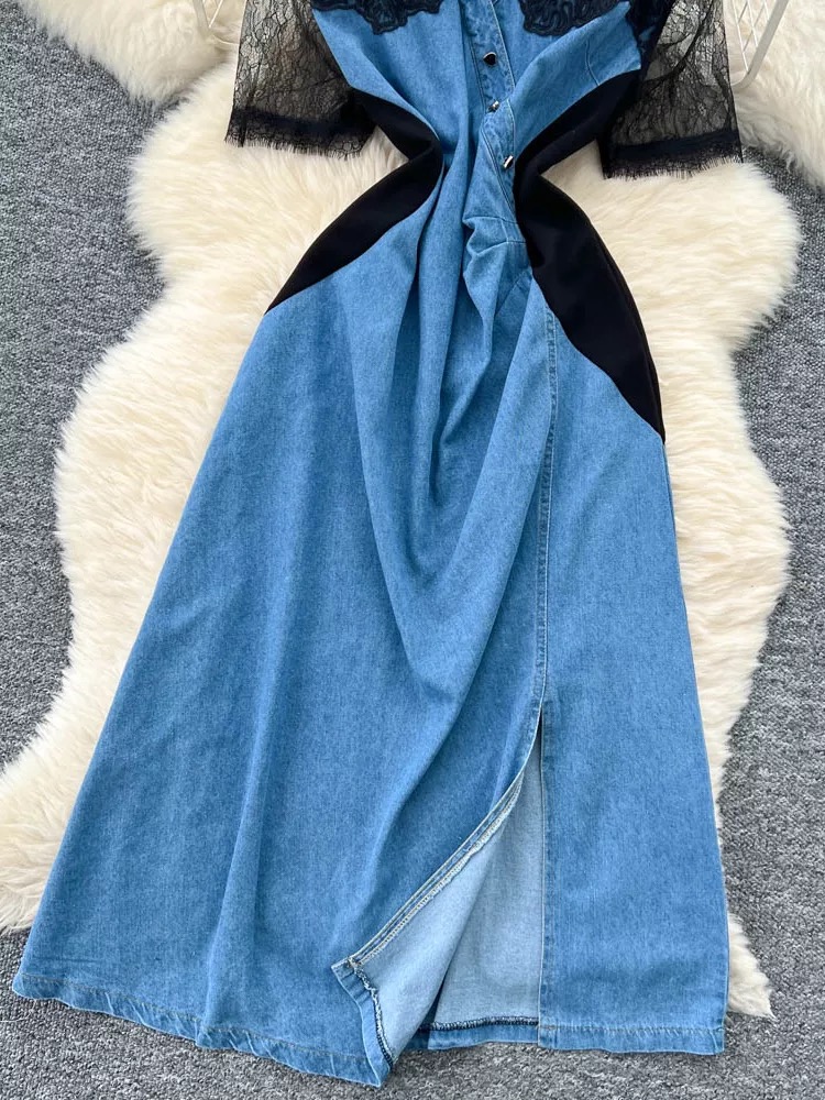 Gone viral lace denim dress DD61